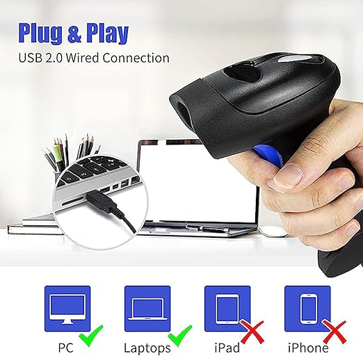 - ใ๐๐ฟ๐ด๐ผ๐ป๐ผ๐บ๐ถ๐ฐ ๐๐ฒ๐๐ถ๐ด๐ปใ The curved handle is extended and thickened, tailor-made for customers. Specially designed smooth and flat trigger for better grip. ใPackage IncludesใBarcode Scanner x1, USB Cable x1, Dongle x1, User Manual x1.